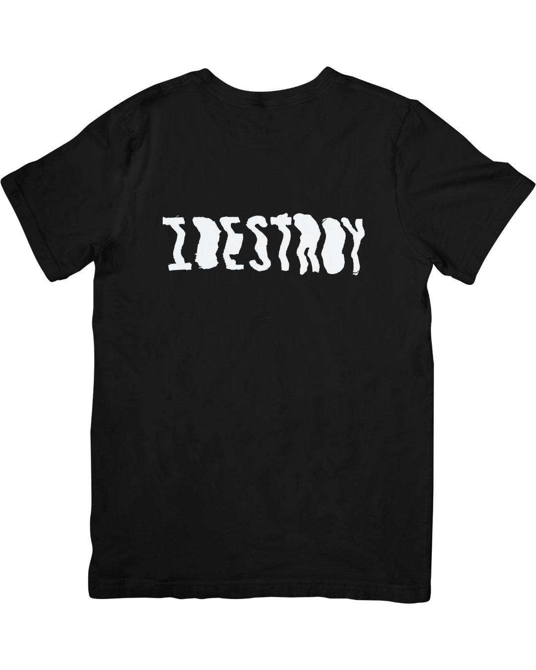 IDestroy white logo on black tshirt.